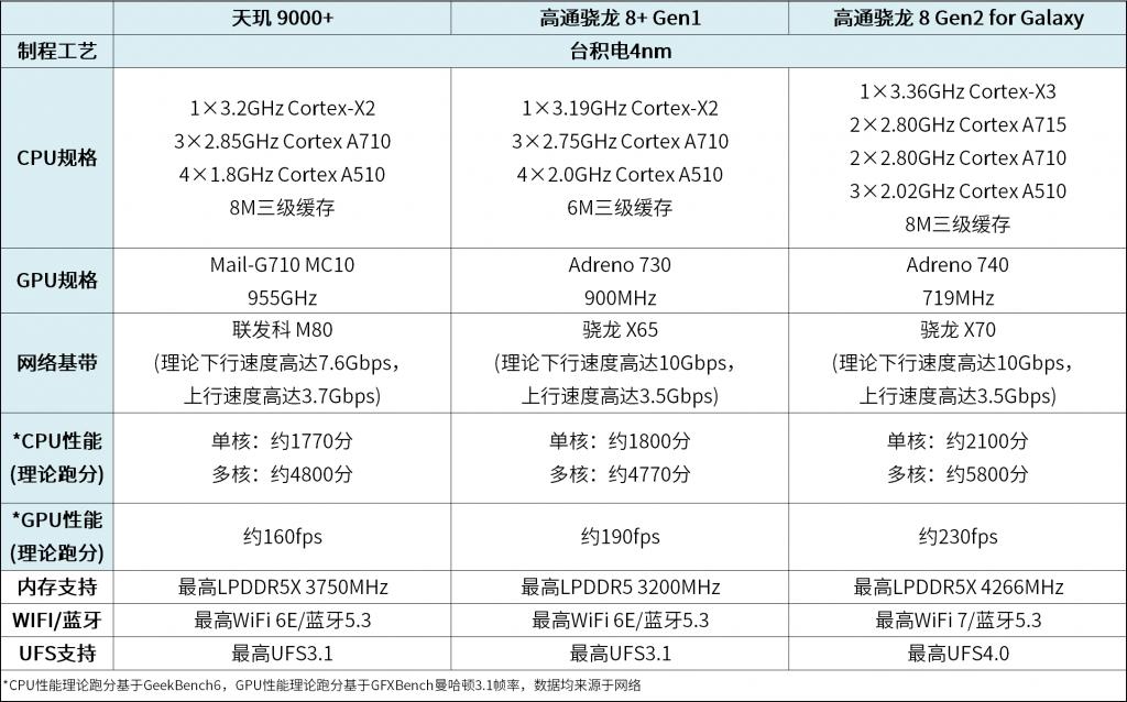 (当前已知折竖折屏手机处理器对比,图源:雷科技自制)