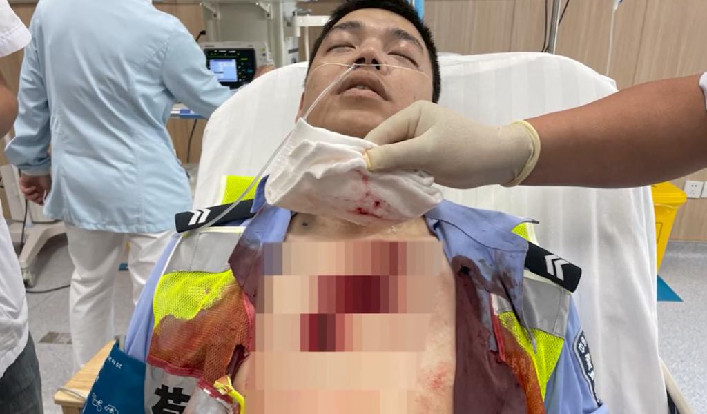 整件警服被鲜血浸红了 ……