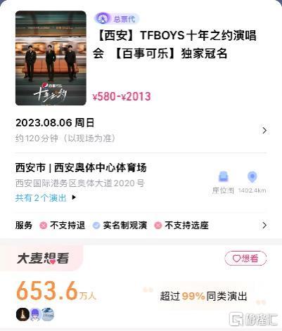 就拿 TFBOYS 西安十周年演唱会来说,大麦平台数据显示,有超 600 万人想看该演唱会,甚至超过了大麦周杰伦演唱会 " 想看 " 的纪录。