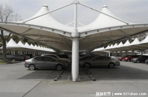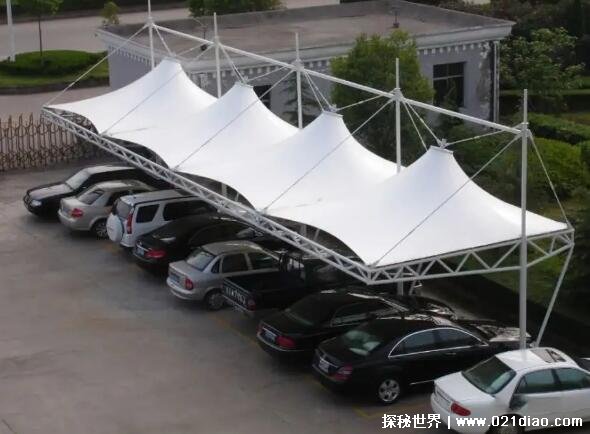 4、面积则有占地面积和展开面积两种,平顶式膜结构车棚为了计算方便,一般就按占地面积来计算,算的是垂直面积;而一些特异性膜结构车棚,则是以实际展开面积来计算,因为造型不同,会有高低差,使用的材料更多,价格也更贵。