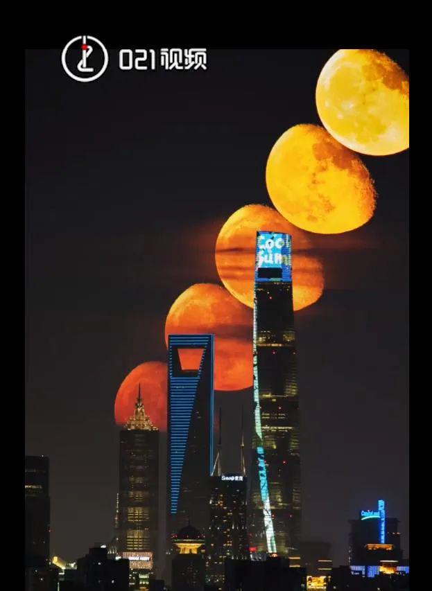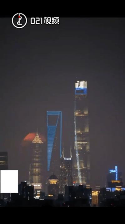 这样的月升穿过陆家嘴 " 三件套 " 并不常见,
