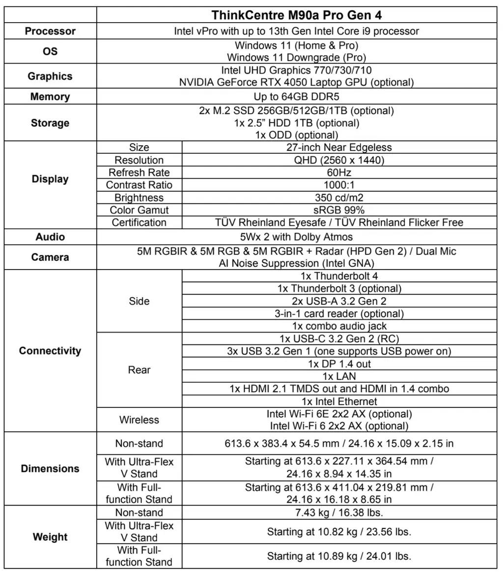 联想发布第四代 ThinkCentre M90a Pro 一体机:27 英寸屏幕