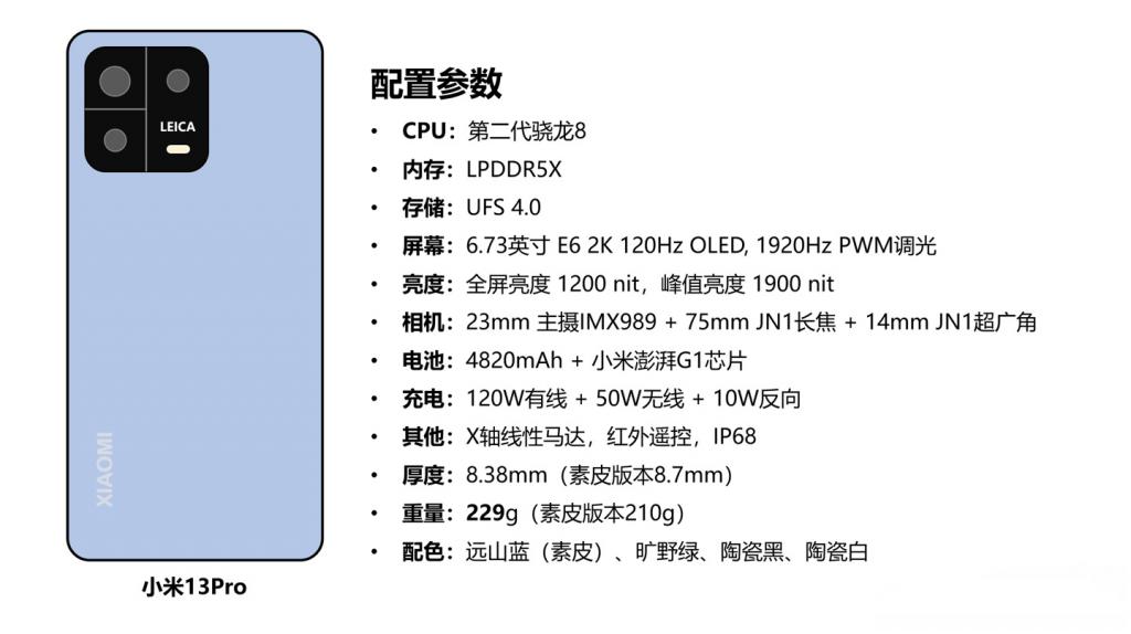 IT 之家获悉,小米 13 Pro 将配备 5000 万像素的索尼 IMX989 1 英寸传感器,以及 75mm 徕卡长焦镜头。