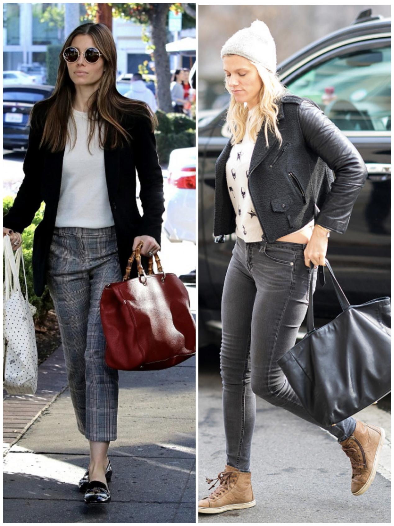而更大的托特包则会给人休闲的感觉。因为大的托特包在日常生活中更为常见,所以相对来说更加百搭,能够与很多服装搭配在一起。