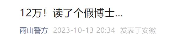 " 我被人骗了。" 日前,马鞍山市公安局雨山公安分局佳山派出所民警接到小珍报警,称其在网上被人以帮助办理博士升学为由骗走了 12 万元。