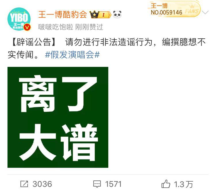 就在吃瓜群众争相讨论之时,王一博的粉丝团 " 王一博酷豹会 " 发辟谣公告:" 请勿进行非法造谣行为,编撰臆想不实传闻。" 不过截至记者发稿时,王一博本人及其工作团队,并未就此事作出回应。