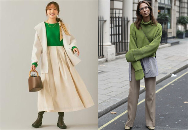 绿色上衣和“米色”单品都是大地色系,所以搭配起来会带来林间的浪漫感,用凯丽绿色搭配明亮的米色,会在将浅绿色和米色结合起来,会增加协调的印象,穿着优雅也带来生的气息。
