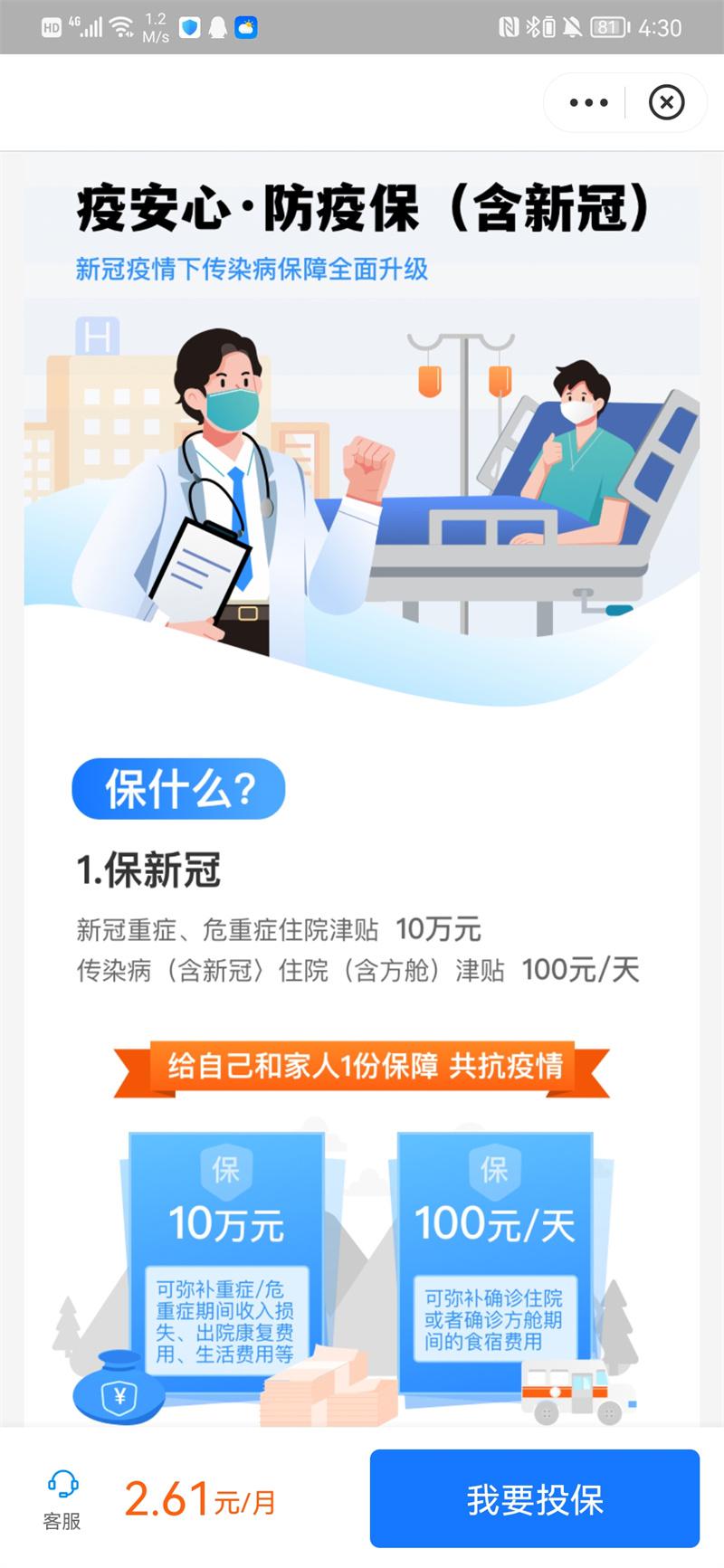 目前,在网络平台上,还有一个与新冠相关的保险产品正在售卖。然而,该产品和此前各大保险公司推出的 " 新冠险 " 有着很大差别。该产品不保障新冠病毒无症状感染者。只保障新冠重症 / 危重症住院与传染病(含新冠)住院(含方舱)。