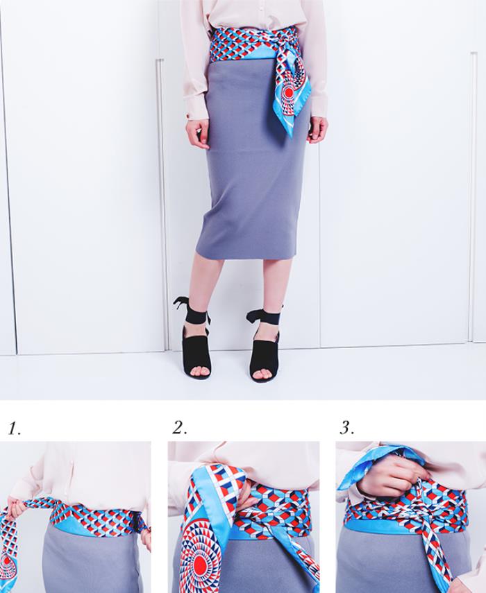 1.折成一个稍微粗一些的长方形,在腰部周围绕一圈。