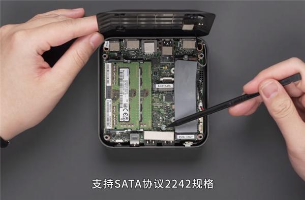 内部还预留了 M.2 2242 扩展口,但仅限 SATA 协议。
