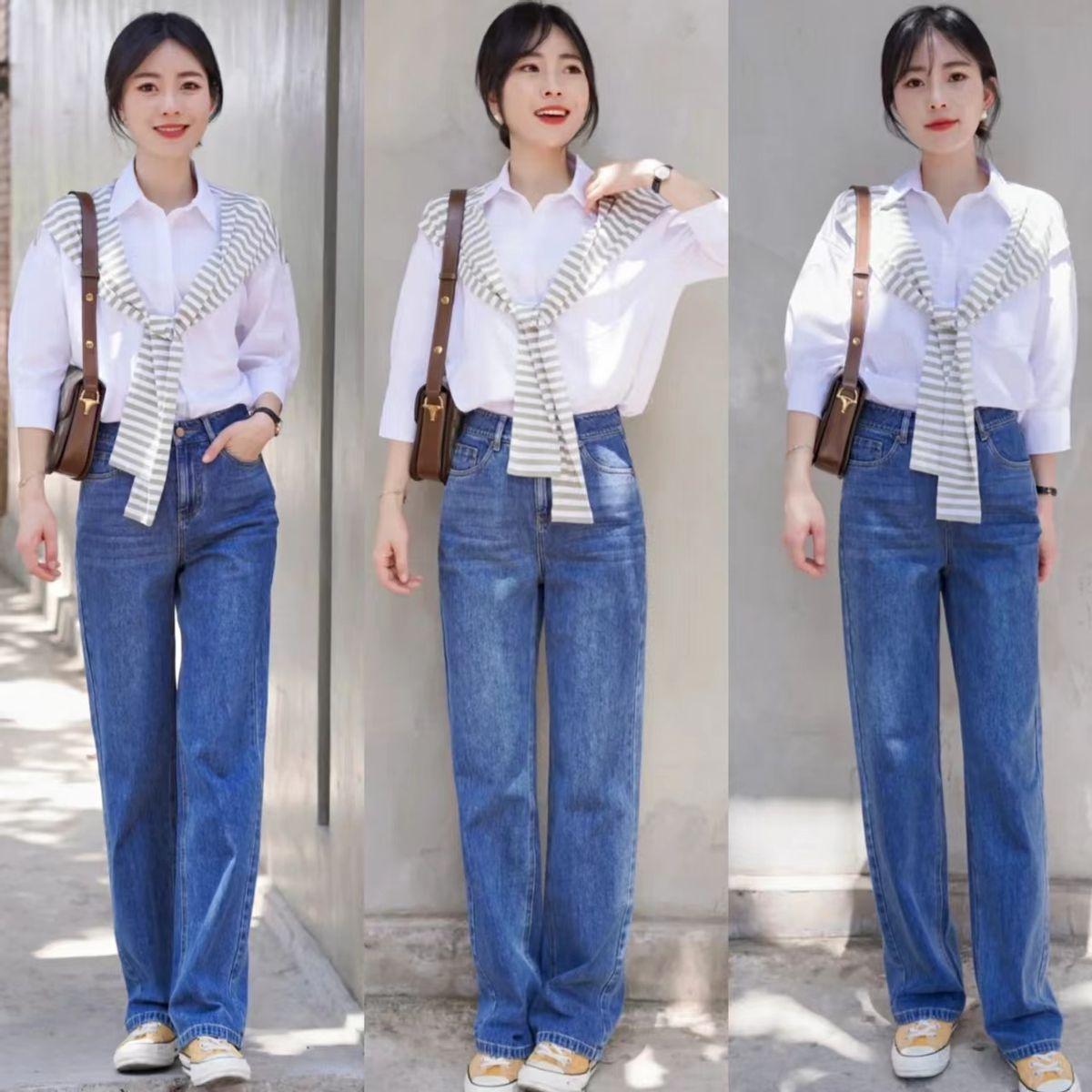 白衬衫+直筒牛仔裤