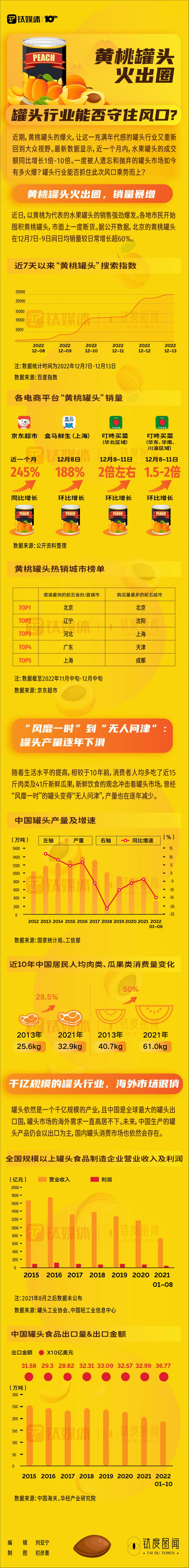 数据来源:钛媒体科股宝、百度指数、京东超市、国家统计局、工信部、罐头工业协会、中国轻工业信息中心、中国海关、华经产业研究院等。