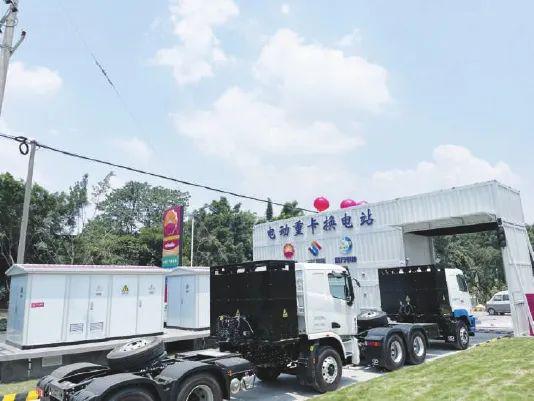 新能源重卡销售人员张洋告诉记者," 除了长途物流车型,大部分重卡的运输路线都非常固定,可以不用强调续航,而且用车也比较集中,非常适合应用换电模式。同时,新能源重卡车型电池量大,哪怕是快充,补能的时间也比乘用车翻番 "。
