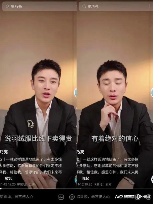 11 月 12 日晚,贾乃亮也发视频表示:" 今年双十一有争议,网友质疑羽绒服比线下卖得贵,但我对我的机制有着绝对的信心。"