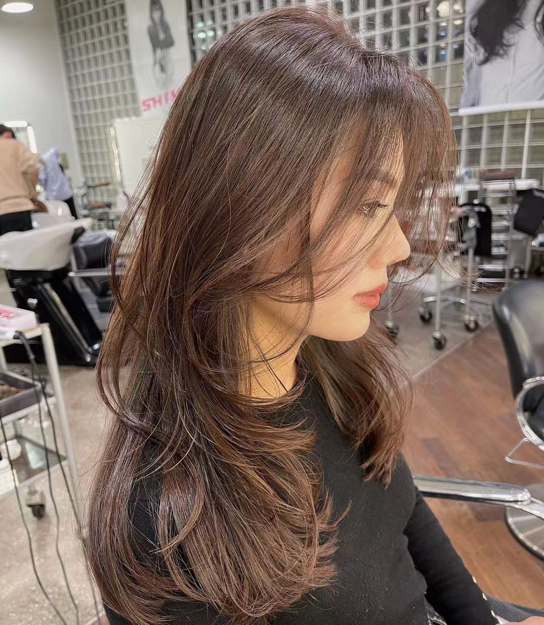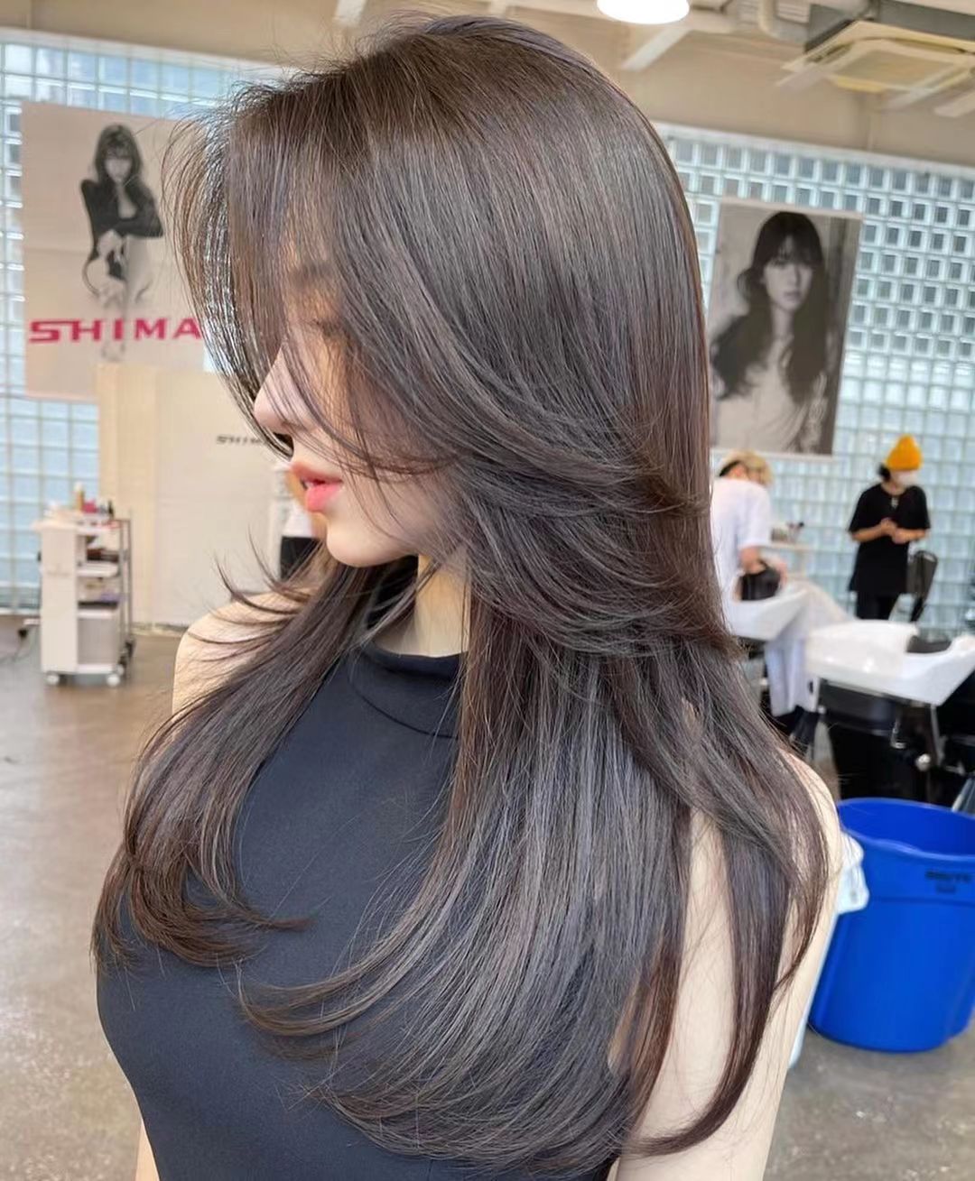 比如上图中这种发色,就属于偏冷的棕色,也就是说在棕色中加入了灰色的成分,就会形成这种亚光色的底色,而且质感和光泽感也会得到很大的提升。因为不用漂发,发质也得到了改善,减少了染发和护发的频率,因此开始大行其道。