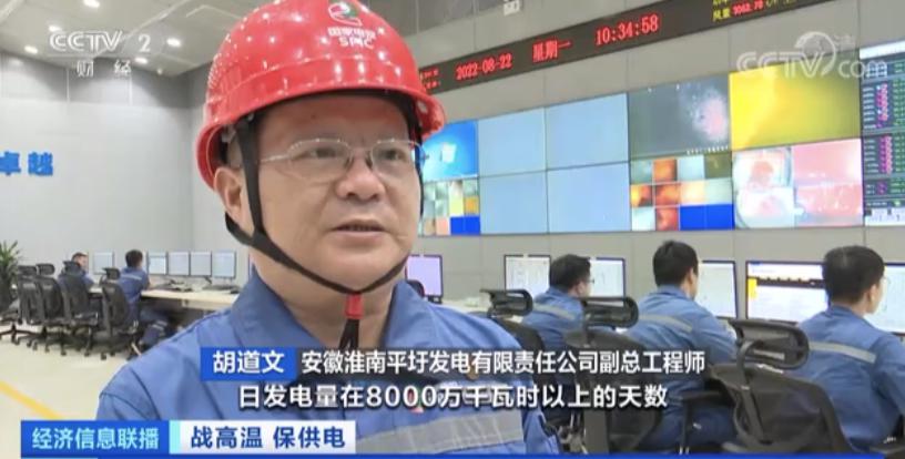 安徽淮南平圩发电有限责任公司副总工程师 胡道文:迎峰度夏期间日发电量在 8000 万千瓦时以上的天数达到 44 天,9000 万千瓦时以上达 9 天,均创造建厂以来最高纪录。