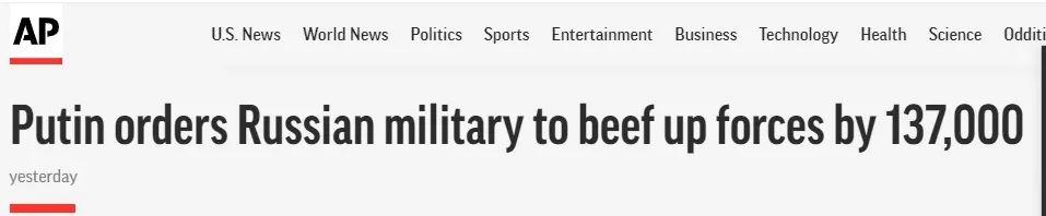 外媒关注普京增兵。图片来源:美联社报道截图