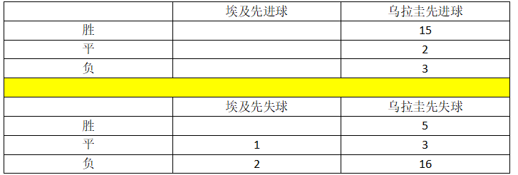 △两队历史上只有1次交锋记录,2006年8月16日的友谊赛中乌拉圭2-0埃及。