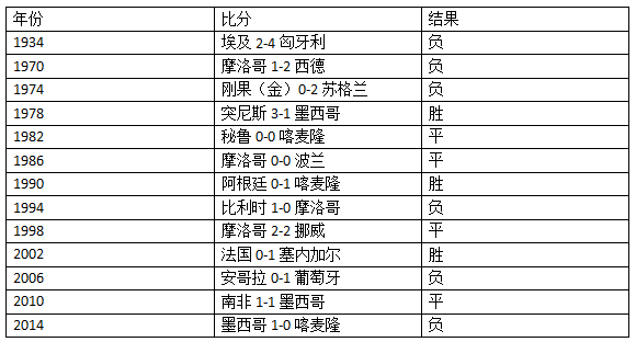 五、埃及世界杯上此前还从未对阵过来自南美洲的球队。