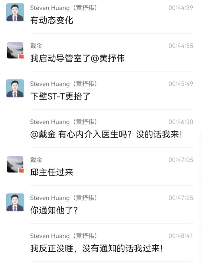 12 月 25 日凌晨 3 时 24 分,浙江省中医院心血管内科戴金副主任医师在 " 胸痛群里 " 向大家报告了情况。群里大家心中悬着的石头也终于安稳落地——疫情下的这场生死急救也终于暂时告一段落。