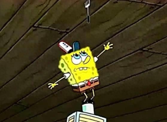 在第25集里,海绵宝宝一如既往地去蟹堡王工作,不过因为一些失误把自己的铲子弄到了屋顶上,于是他堆起各种东西去拿铲子,不过因为失误手指卡在了木板的缝隙里,导致手指肿胀了起来。
