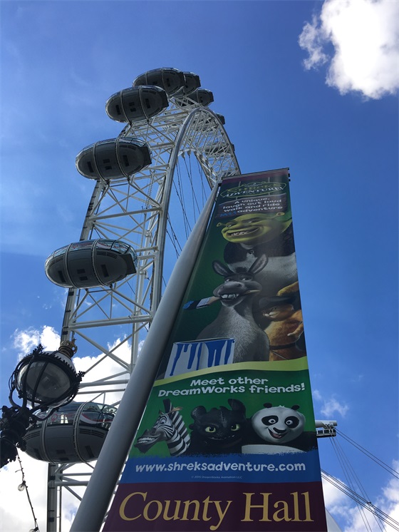 位于英国泰晤士河畔、白金汉宫旁,由英国航空公司投资近9000万英镑兴建的伦敦眼就是这样继埃菲尔铁塔之后的一个超乎寻常的观览项目。直径135米的伦敦眼,可将泰晤士河、大笨钟及伦敦景色尽收眼底。其原本是为了庆祝世纪之交而修建的临时性建筑,存在期限为五年,到期拆除。然而出乎人们意料的是,这个摩天轮景观效果、社会效益和经济效益都非常之好。在2000年3月启用之后的17个月内,其游客接待量就突破了500百万人次,并成为与伦敦塔、伦敦自然历史博物馆相比肩的“伦敦三大最受欢迎的景点”之一。