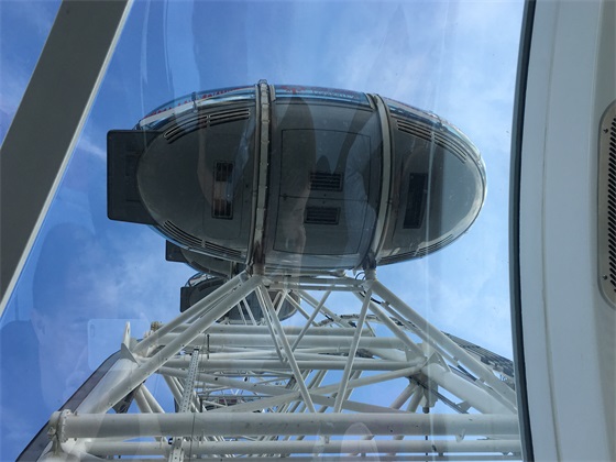 3)吊舱数量:共有32个乘坐舱,全部设有空调并不能打开窗。每个乘坐舱可载客约25名,回转速度约为每秒0.26米,即一圈需时30分钟 。