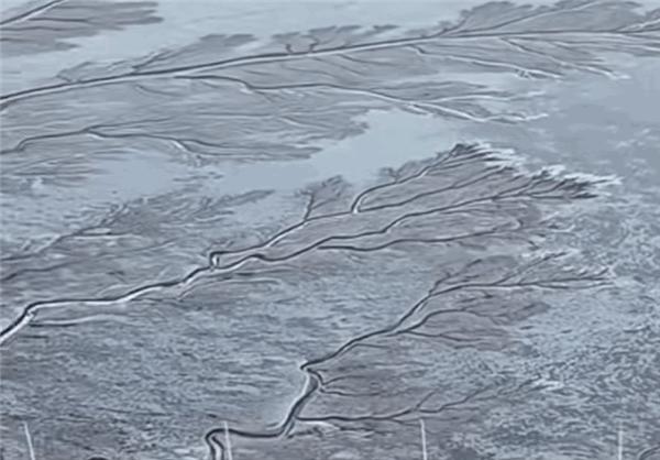 网友上传的航拍画面显示,今天早晨时,钱塘江滩涂处出现“江水冻住奇观”,嘉绍大桥下,江水结成冰面,如同地面开裂般的纹理向远方延伸,甚至看上去还像是一丛丛树木一般。