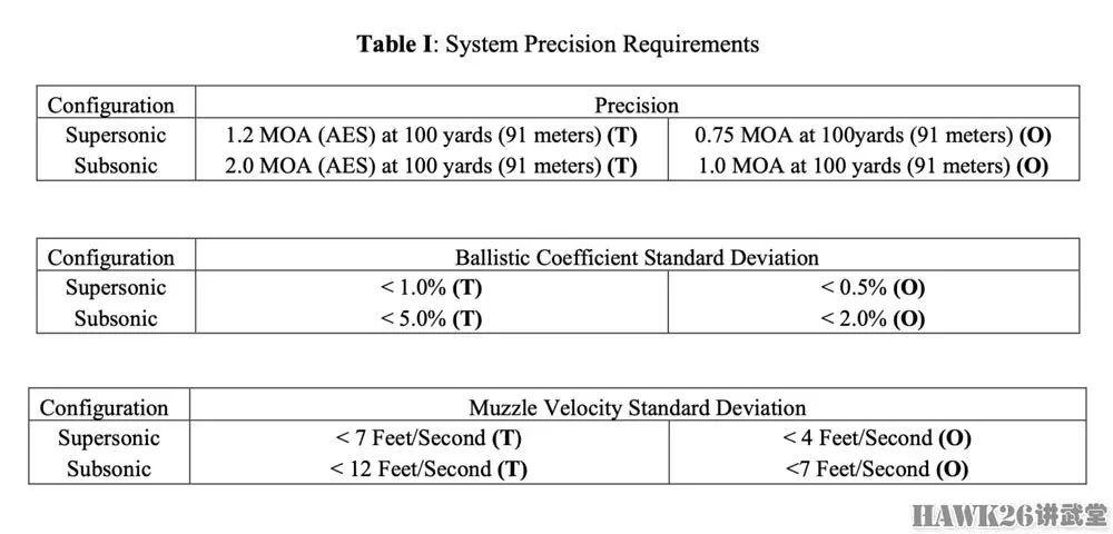 该系统的主要口径弹药应分为亚音速和超音速,如果主口径并非当前国防部批准的弹药,则系统应该可以通过快速转换套件(T)转换为当前经国防部批准的 .300 诺玛马格南弹药。使用快速转换套件,应该能够在 5 分钟就能改变口径。