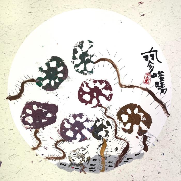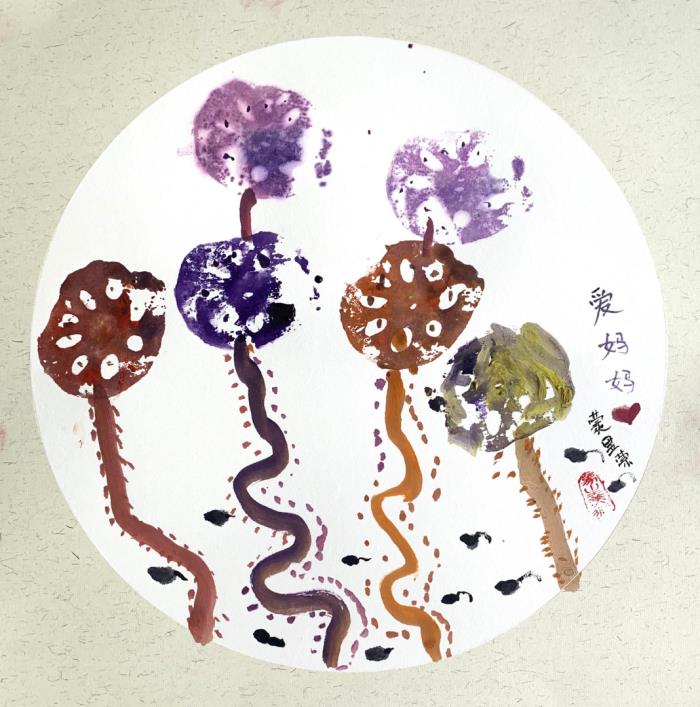 “莲蓬”里面孕育了莲子,莲子和连子谐音,古人因此用莲蓬来寓意母子连心,子孙满堂。莲蓬上会有很多空洞,寓意着路路相通。以此作画,很适合送给自己的爱人和孩子。