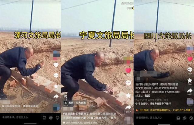 1 月 15 日起,一段 " 男子徒手劈数十块板砖 " 的视频,在短视频平台上热传。一名发布该视频的博主还带上 # 文旅局长们卷起来了 # 词条,该自媒体称:" 我们宁夏文旅局长能单手劈砖!"