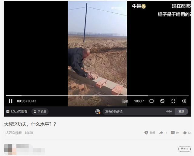 记者在网络上检索发现,1 年前,就有博主分享过此段视频。据了解,上述视频中出现的男子系某短视频平台上一名功夫博主,拥有 220 多万粉丝。记者在其账号上看到,他曾多次分享类似手劈板砖的视频。