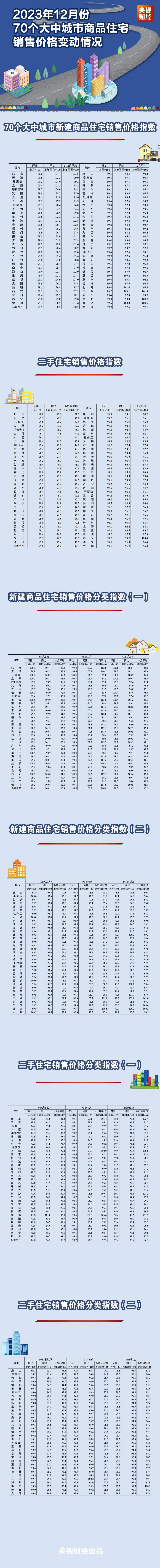 2023 年 12 月份,70 个大中城市中,各线城市商品住宅销售价格环比下降、同比有涨有降。