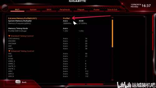 选中Extreme Memory Profile(X.M.P.)选项- 把Disabled值变更为Profile1预设,即可—————————————————————为符合广大用户的使用习惯,选择了三大板厂的默认英文BIOS界面进行XMP设置说明。用户可以先把语言设置成为中文,这样查看起来更方便。同品牌的不同主板间可能会存在一定差别,但具体方式不会有太大改变。XMP设置在Intel主板中叫做XMP,而在AMD主板中则会叫做A-XMP。