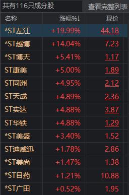 ST 股素来也是短炒资金的聚集地,虽然板块指数明显下跌,但多只 ST 个股还是走出 " 独立行情 ",如 *ST 左江午后再度涨停,1 月 12 日以来涨幅高达 90%。