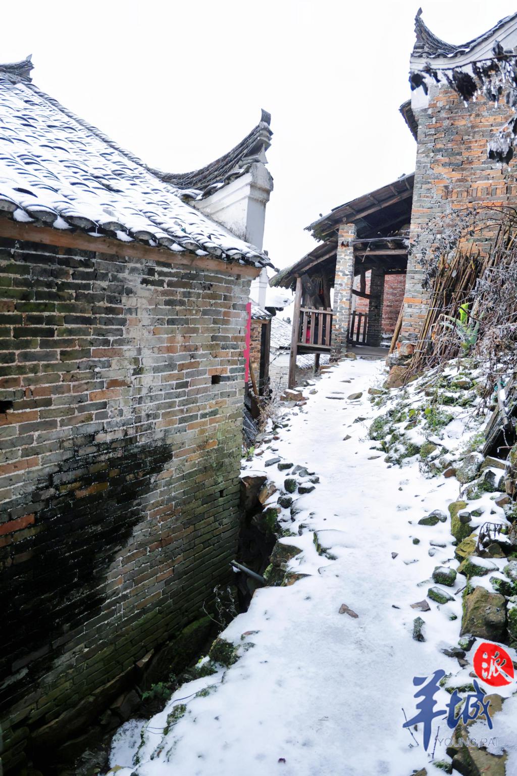 在三排镇油岭老寨,拍客一早开车上去拍雪景,碰到大人小孩们在看雪玩雪,个个都喜笑颜开。这里的雪把独特的瑶寨装扮得仿佛回到小时候。