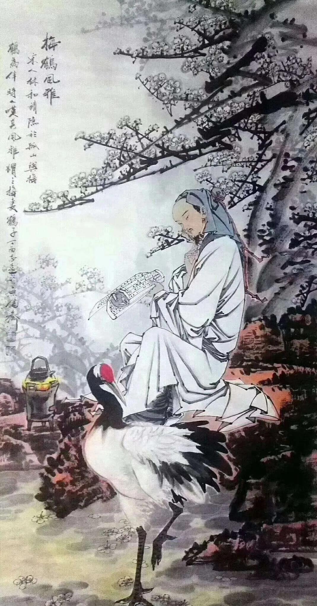 林逋终生不仕不娶,无子,惟喜植梅养鹤,自谓 “以梅为妻,以鹤为子”,人称“梅妻鹤子”。—巜宋史.林逋传》
