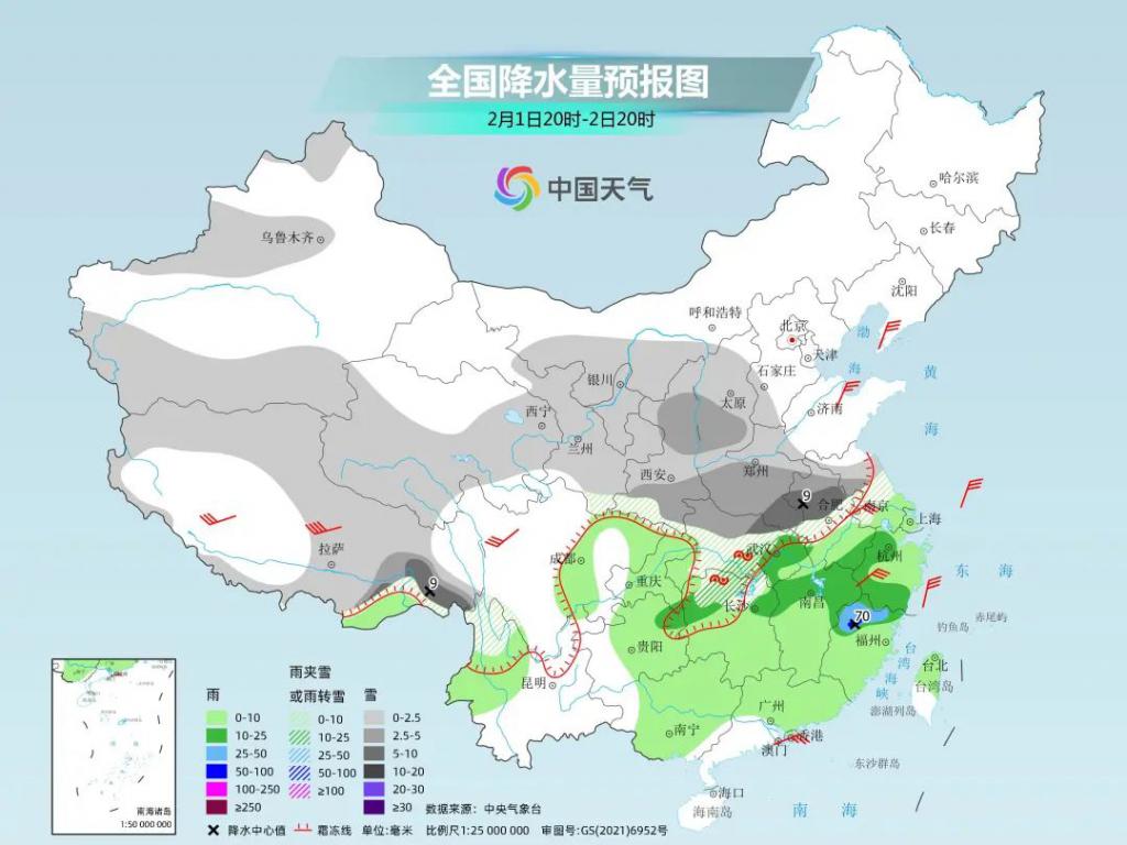 在冷暖 " 交战 " 的最前沿,也就是贵州至湖北、山东一线,雨雪相态还会非常复杂,出现大范围冻雨天气,主要波及河南南部、湖北、安徽北部、江苏北部、山东南部、湖南西北部、贵州东部等地,将给春运交通带来很大影响。尤其湖北、湖南西北部、贵州东部冻雨强度大、持续时间长,影响更重。