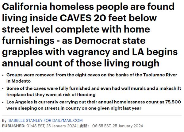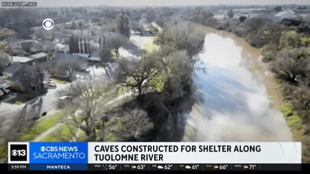 据 DailyMail 网站 1 月 25 日报道 加州有一群无家可归者居住在距离街道的图奥卢姆河(Tuolumne River)沿岸 20 英尺下的洞穴中居住。
