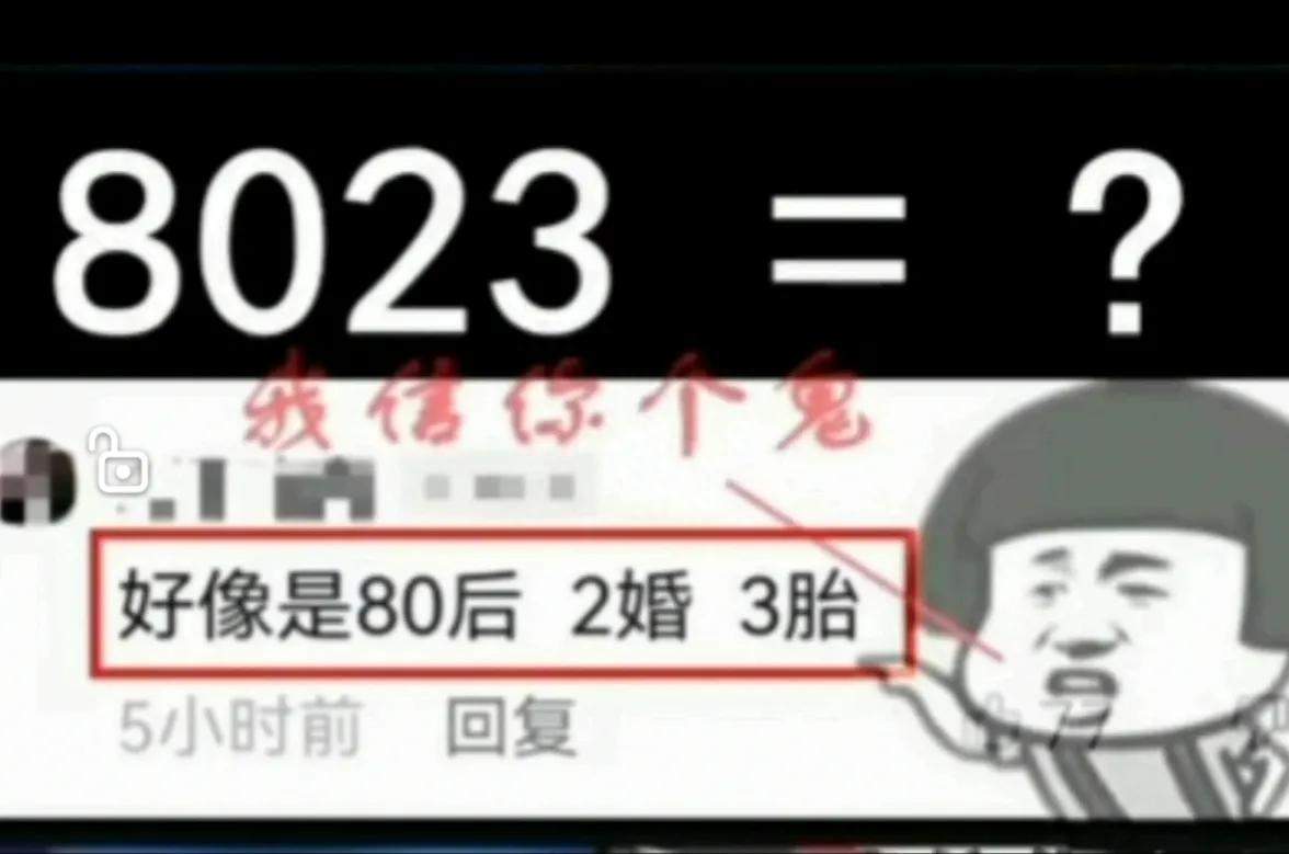 8023一出现,有人在网上就给出了答案,好像是80后二婚三胎,我信你个鬼啊!