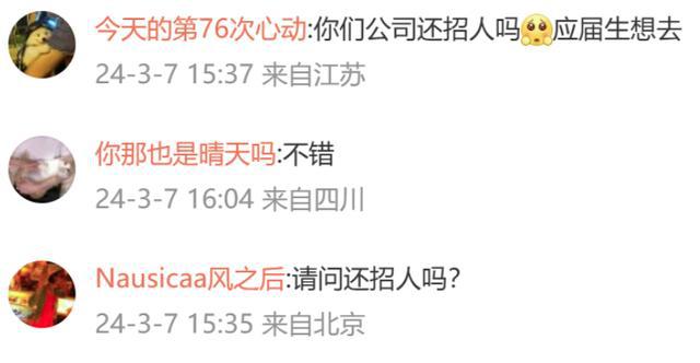 对此,有网友留言道," 请问还招人吗 "" 应届生想去 "" 不错 "。