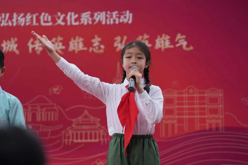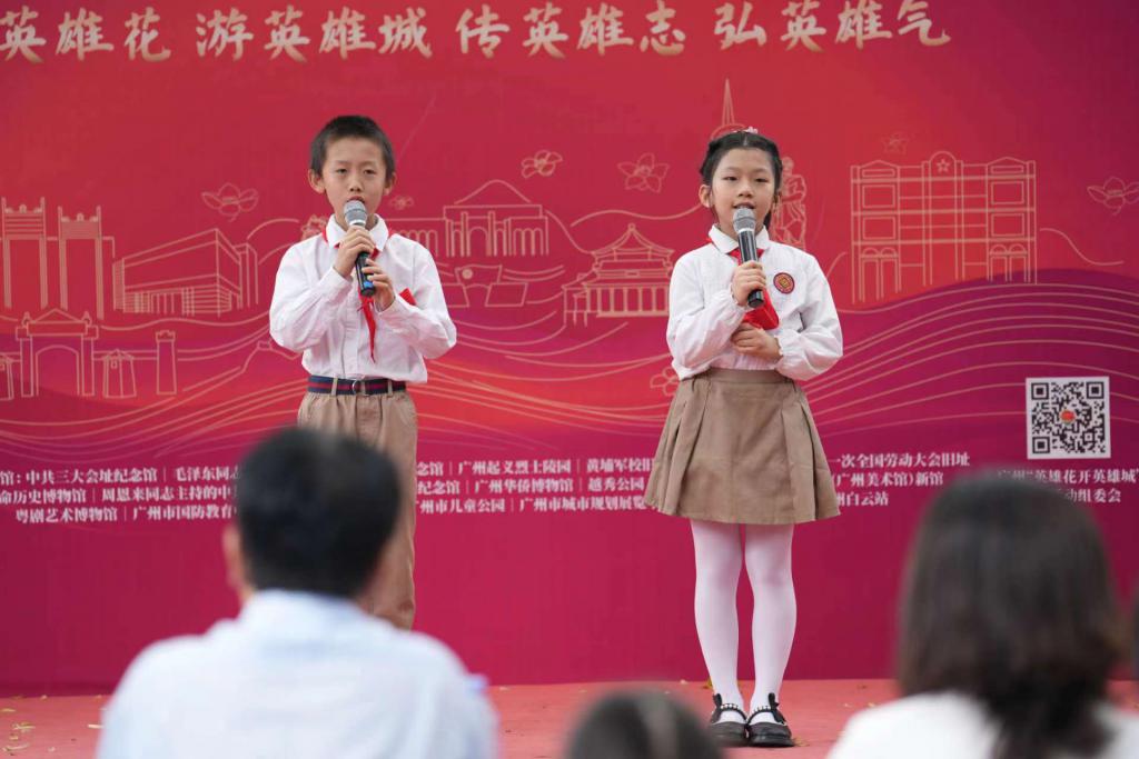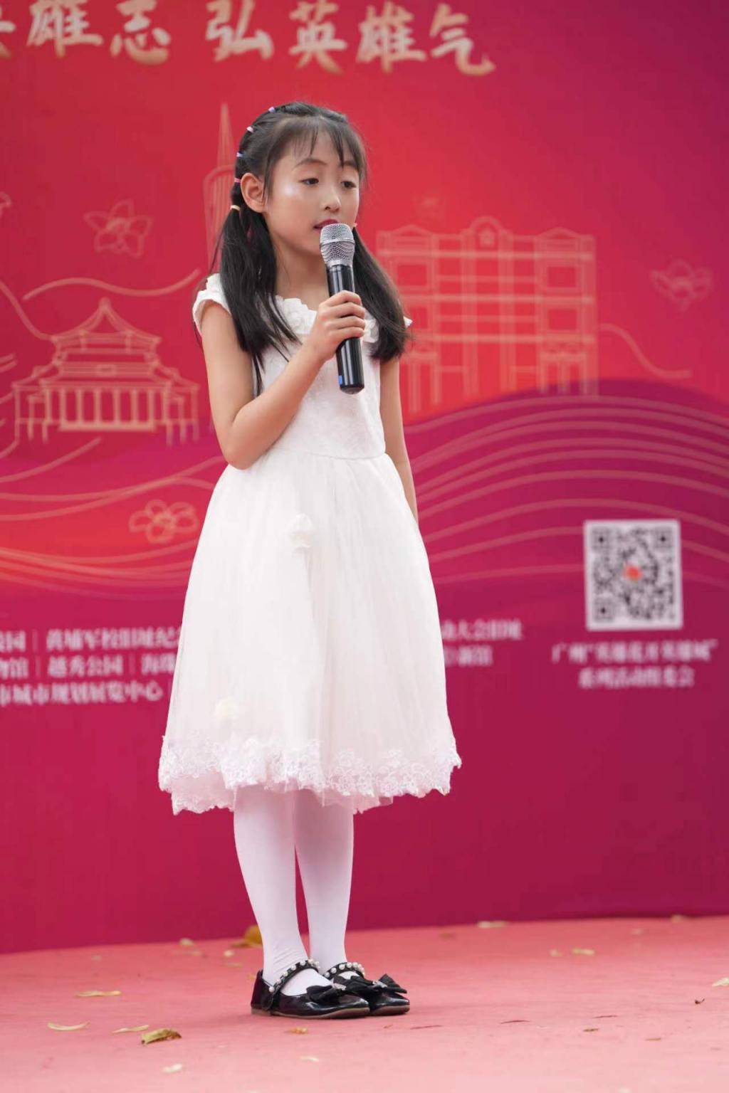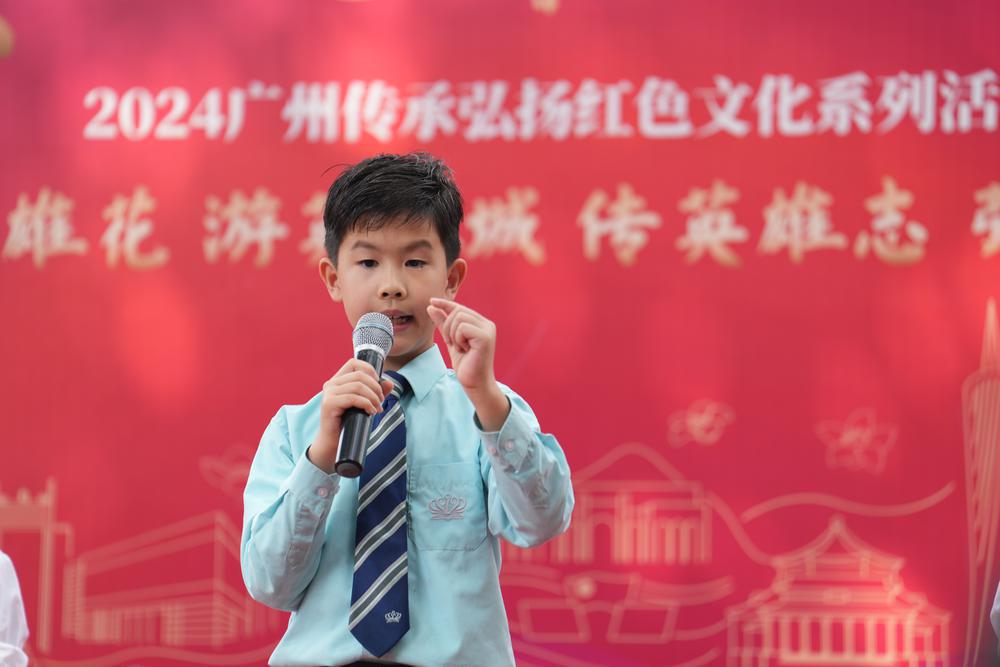 广州越秀区农林下路小学邵薇林同学的朗诵《刑场上的婚礼》给观众们分享了一个有关特殊而庄重的婚礼故事。广州市天河区华阳小学饶臻、唐禹宸同学带来的朗诵《可爱的中国》,抒发了心中对于祖国诚挚磅礴的热爱。饶臻分享道:" 想到烈士们的愿望在如今能够实现,我们就感到无比开心,希望我的朗诵让更多的小朋友们了解烈士的故事,弘扬红色精神。" 来自广州幼儿师范高等专科学校陈静舒带来的朗诵《那支钢笔》以一支钢笔为线索,为大家讲述了一个可歌可泣的故事,陈静舒精彩的表演让不少观众流下了眼泪。陈静舒告诉记者:" 这次演出对自己有很大帮助,不仅有机会用自己的方式纪念英雄,还认识到了很多小朋友,感受到了他们对于英雄们的尊敬与热爱。参加本次活动也让我可以深刻铭记历史,助力传承红色精神。"