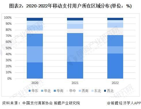 从用户所在区域分布来看,华东和华中地区的移动支付用户集中度进一步提高,移动支付用户进一步向长三角、珠三角等经济较发达地区集中,东北地区和西部地区的移动支付用户占则比较为稳定。2022 年的调查结果显示,华东地区移动支付用户占比为 41.4%,华南地区占比为 18.4%,华中地区和华北地区占比分别为 12.3% 和 11.8%。