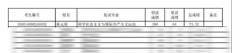 北大国际关系学院公布的复试成绩显示,考生蔡元培的复试成绩为 64 分,比另一位同专业考生低 10 分。但因为初试成绩领先,根据初试权重 70%、复试权重 30% 的加权核算方式,他的总成绩依然排名其复试专业——科学社会主义与国际共产主义运动专业第一。