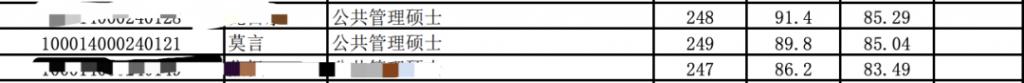 此外,有网友注意到,进入复试名单的还有一位名叫 " 莫言 " 的考生。复试成绩公布后,莫言在公共管理硕士专业中,以 85.04 分排名第二。