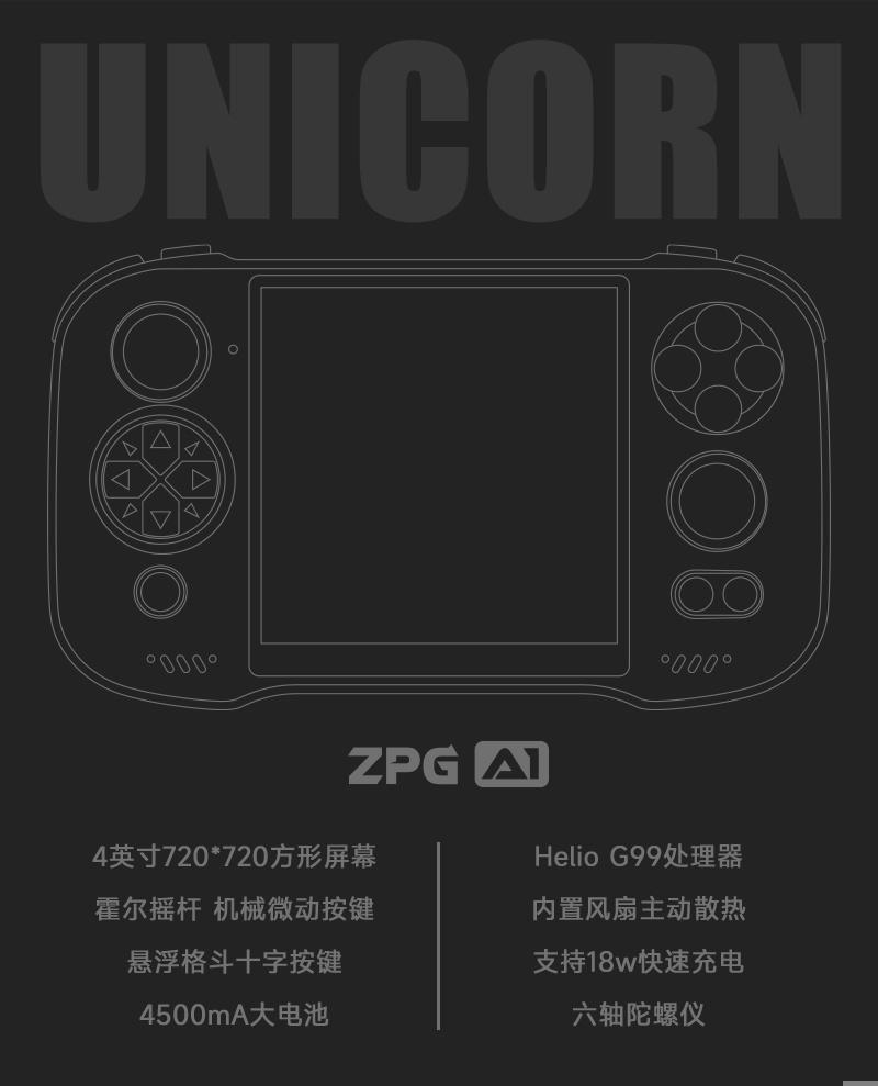 ZPG A1 独角兽复古掌机开启预售:Helio G99 处理器,899 元起