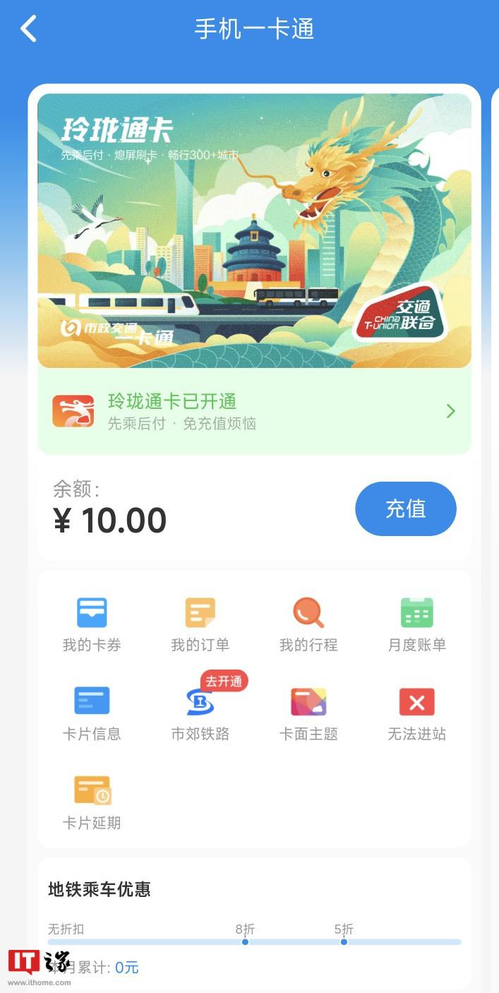 北京市政交通一卡通“玲珑通卡”正式上线:随用随充、熄屏刷卡