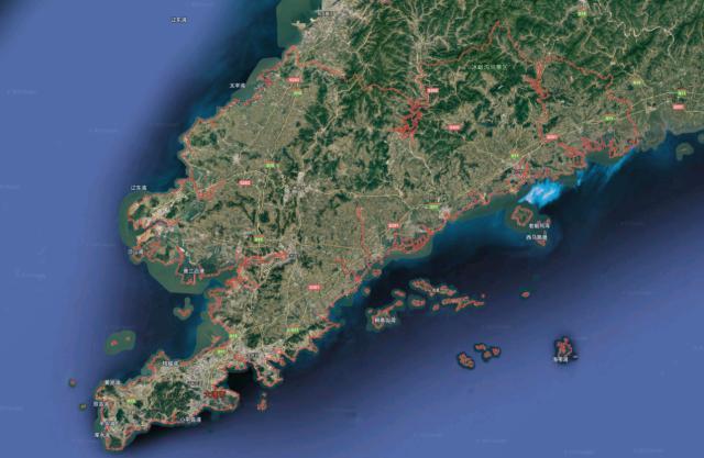 下面是辽宁省大连市地图,这是一个非常典型的半岛。