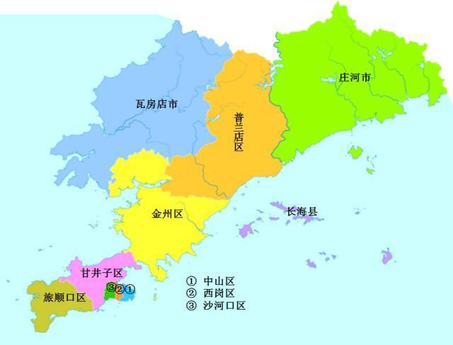作为一个计划单列市辽宁省大连市管辖7个区、1个县,2个县级市:中山区、西岗区、沙河口区、甘井子区、旅顺口区、金州区、普兰店区、瓦房店市、庄河市、长海县。