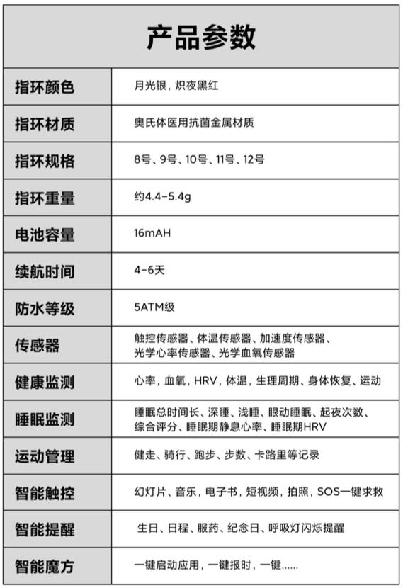 类似三星的 Galaxy Ring 和 Amazfit 的 Hello Ring,这款智能戒指的核心功能是「全方位健康监测」,日常佩戴即可监测心率、血氧、HRV、体温、睡眠质量和运动步数等信息。